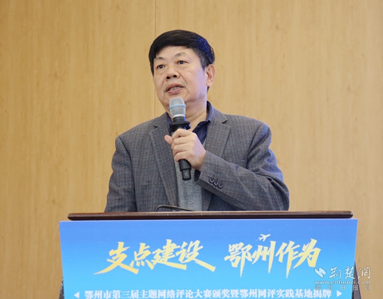 頒獎(jiǎng)活動(dòng)現(xiàn)場(chǎng),湖北省社會(huì)科學(xué)院原副院長(zhǎng)、省政府咨詢(xún)委員、長(zhǎng)江經(jīng)濟(jì)帶智庫(kù)聯(lián)盟秘書(shū)長(zhǎng)秦尊文受邀出席,并從網(wǎng)評(píng)的角度,圍繞“弘揚(yáng)花湖精神 助力支點(diǎn)建設(shè)”主題,發(fā)表了主旨演講。他結(jié)合最新公布的《中共中央關(guān)于制定國(guó)民經(jīng)濟(jì)和社會(huì)發(fā)展第十五個(gè)五年規(guī)劃的建議》,高屋建瓴分析了鄂州當(dāng)前的經(jīng)濟(jì)形勢(shì),提出了切實(shí)可行的建議。湖北省委直屬機(jī)關(guān)工委干部馮歡以中央網(wǎng)信辦網(wǎng)絡(luò)評(píng)論“創(chuàng)四優(yōu)”競(jìng)賽獲獎(jiǎng)作者身份,分享了自己多年網(wǎng)評(píng)文章寫(xiě)作的心得體會(huì),風(fēng)趣幽默、干貨滿(mǎn)滿(mǎn)。