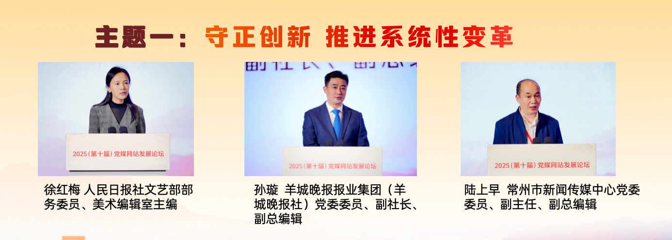 在“守正創(chuàng)新 推進(jìn)系統(tǒng)性變革”主題研討環(huán)節(jié),人民日?qǐng)?bào)社文藝部部務(wù)委員、美術(shù)編輯室主編徐紅梅,羊城晚報(bào)報(bào)業(yè)集團(tuán)(羊城晚報(bào)社)黨委委員、副社長(zhǎng)、副總編輯孫璇,常州市新聞傳媒中心黨委委員、副主任、副總編輯陸上早分別作主旨發(fā)言,介紹了各自領(lǐng)域推進(jìn)系統(tǒng)性變革、發(fā)展新時(shí)代中國(guó)特色社會(huì)主義文化的實(shí)踐與探索。徐紅梅表示,“每日讀畫”采取“AI+美術(shù)”“微視頻+夜讀”的形式,堅(jiān)持“讀準(zhǔn)、讀細(xì)、讀新、讀美”,讓AI成為深入畫境、開(kāi)啟古今對(duì)話的共創(chuàng)者,以動(dòng)態(tài)轉(zhuǎn)譯、意境擴(kuò)展、流程再造、視聽(tīng)融合開(kāi)發(fā)美術(shù)融媒的敘事潛能,深入挖掘中華文明賡續(xù)傳承的基因密碼,成為探索主流媒體系統(tǒng)性變革的微觀樣本。孫璇表示,羊城晚報(bào)全面啟動(dòng)系統(tǒng)性變革,以做強(qiáng)媒體、文化、數(shù)據(jù)、產(chǎn)業(yè)四個(gè)戰(zhàn)略板塊為重點(diǎn),把“技術(shù)賦能”嵌入系統(tǒng)性變革各關(guān)鍵板塊,積極增強(qiáng)文化傳播、促進(jìn)文化交流和繁榮文化生產(chǎn)。陸上早表示,常州借“蘇超”東風(fēng),走出城市轉(zhuǎn)型與能級(jí)躍升之路。改革的推進(jìn)需聚焦六大方向:組織體系化,內(nèi)容精品化,傳播移動(dòng)化,技術(shù)現(xiàn)代化,分配績(jī)效化,干部年輕化。