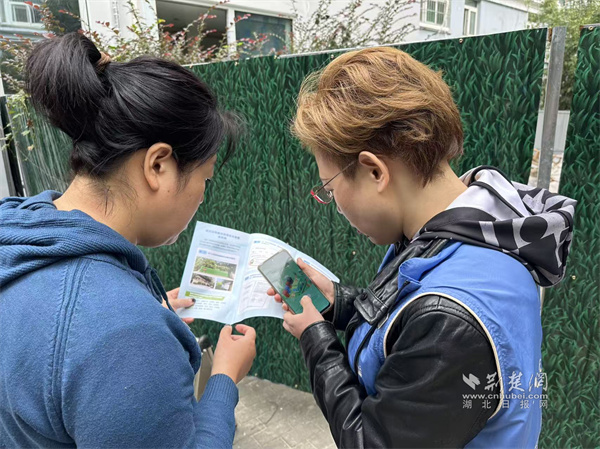 社區(qū)城管委員演示“裝修垃圾清運(yùn)通”小程序用法。 通訊員供圖