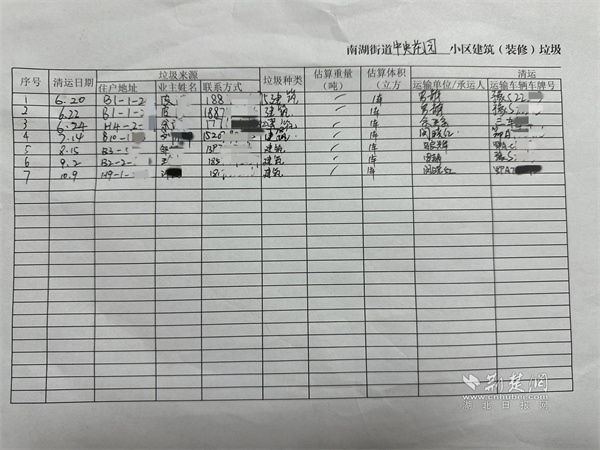 社區(qū)建立清晰的裝修垃圾排放臺賬。 通訊員供圖