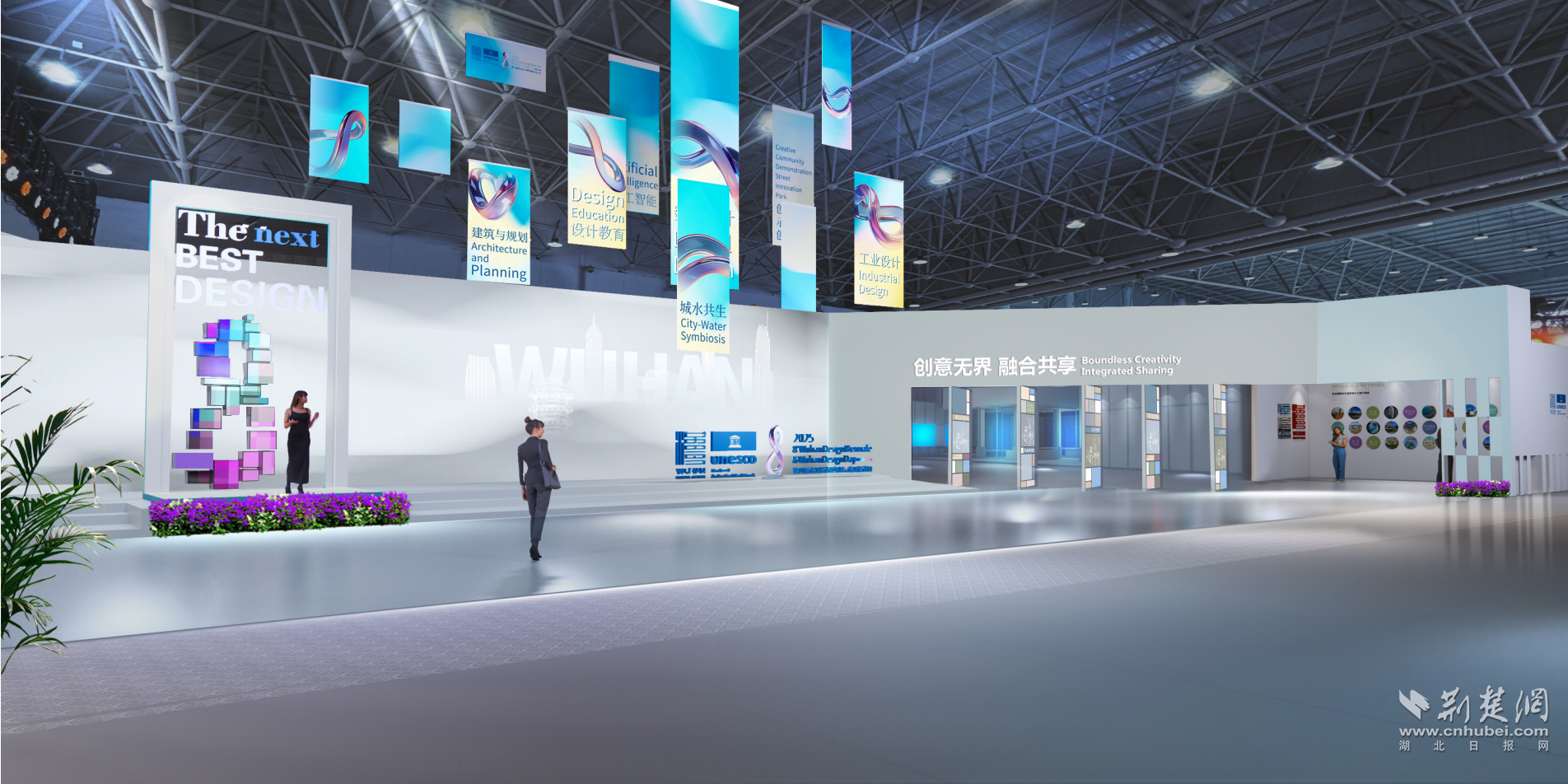 在武漢國際博覽中心,將推出“城水共生智慧設計展”“人工智能創(chuàng)意設計展”“設計教育創(chuàng)新成果展”“數(shù)字創(chuàng)意設計成果展”“工業(yè)設計獲獎作品展”“建筑與規(guī)劃前沿設計展”“創(chuàng)意社區(qū)/街區(qū)/園區(qū)建設成果展”7大主題展區(qū);在沉湖國際小鎮(zhèn)分會場,將推出“國際濕地城市設計展”和“在水一方”國際大師邀請展兩大展覽。同期,精心策劃會議1場開幕式、2場特色活動、6場學術會議、5場平行會議及系列設計成果推介會和設計新品發(fā)布會。