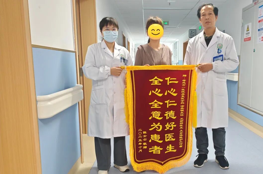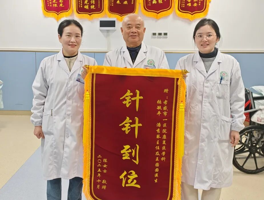 荊楚網(wǎng)(湖北日報(bào)網(wǎng))訊(通訊員 潘秀琴)10月28日,孝感市第一人民醫(yī)院康復(fù)醫(yī)學(xué)科的診室里暖意融融,患者陳女士將兩面分別繡有“針針到位”“仁心仁德好醫(yī)生 全心全意為患者”的鮮紅錦旗鄭重送到醫(yī)護(hù)人員手中,感謝該科團(tuán)隊(duì)用精湛醫(yī)術(shù)與暖心照護(hù)助其重返健康生活。