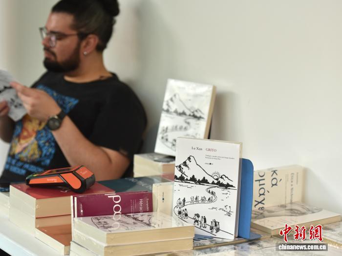 當?shù)貢r間11月4日,巴西圣保羅,一位巴西青年在第二屆圣保羅大學漢學家研討會會場外閱讀葡語版《吶喊》。中新社記者 林春茵 攝