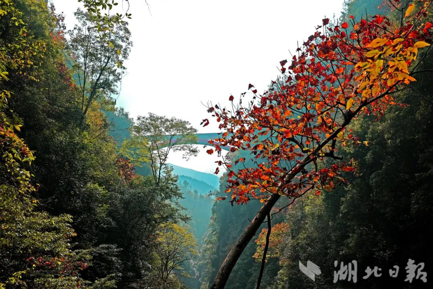 秋光正好,蝶舞清江·地心谷景區(qū)進(jìn)入一年中最富詩意的季節(jié)。峽谷兩岸層林盡染,赭紅、金黃與墨綠交織,構(gòu)成一幅流動的山水長卷。谷內(nèi)溫度宜人,溪流清冽,瀑布飛懸,空氣中富含負(fù)氧離子,是放松身心、親近自然的絕佳場所。