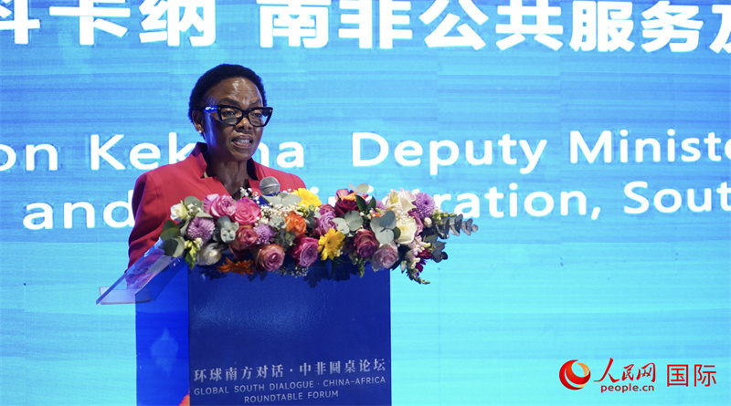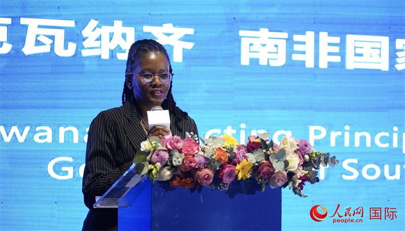 南非公共服務及管理部副部長平基·莎倫·科卡納發(fā)表主旨發(fā)言。 人民網 劉暢攝