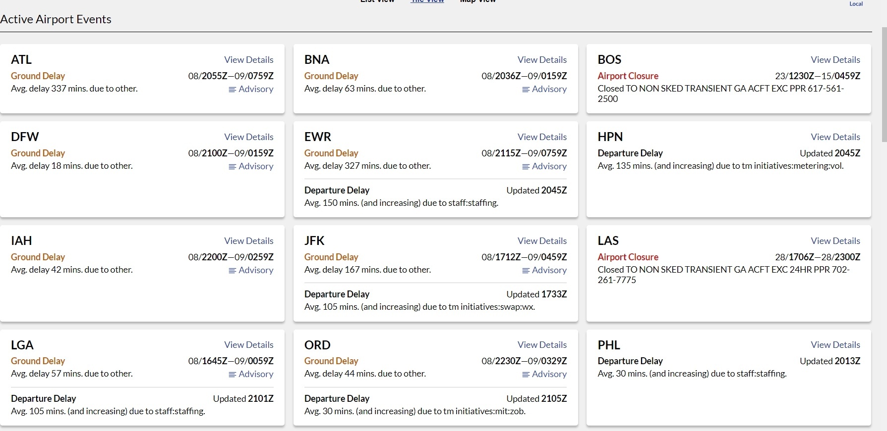 紐約地區(qū)三大機場8日均因人手短缺出現(xiàn)航班延誤。截至8日16時,紐瓦克自由國際機場(EWR)入港航班平均延誤超過327分鐘,出港延誤約150分鐘且預(yù)計將進一步增加;拉瓜迪亞機場(LGA)入港延誤近一小時,出港延誤約105分鐘并持續(xù)上升;肯尼迪國際機場(JFK)平均延誤167分鐘,并一度實施地面停飛令。與此同時,芝加哥、拉斯維加斯及奧斯汀等城市的多座機場亦因相同原因被下令暫時停飛。