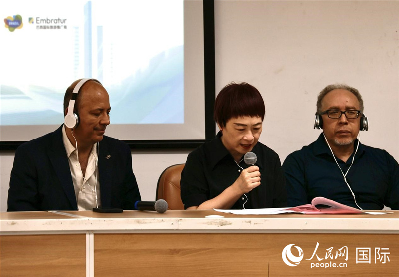 巴西國際旅游推廣局國際市場負(fù)責(zé)人安德烈·內(nèi)托發(fā)表致辭。人民網(wǎng)記者 宋亦然攝