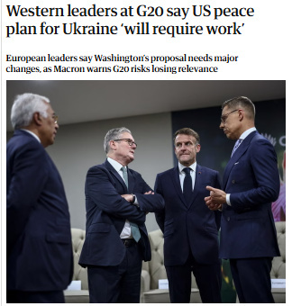 報(bào)道還稱(chēng),歐洲多國(guó)領(lǐng)導(dǎo)人在峰會(huì)間隙舉行會(huì)議,討論他們對(duì)該計(jì)劃的回應(yīng)。他們?cè)诼?lián)合聲明中提到,該草案“包含了對(duì)實(shí)現(xiàn)公正持久和平至關(guān)重要的要素”,但目前其“只是一個(gè)基礎(chǔ),尚待進(jìn)一步完善”。