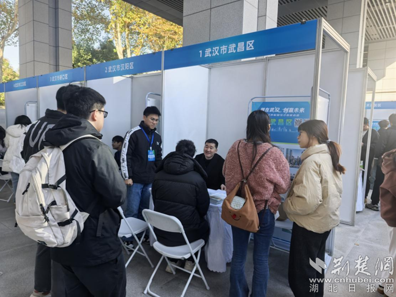 應屆畢業(yè)學子在武昌區(qū)展臺前了解咨詢政策。