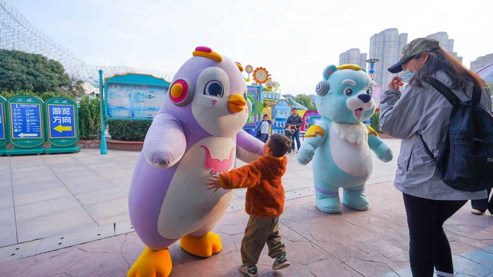 活動(dòng)開(kāi)始,極地家族IP人偶在園區(qū)主入口迎接游客,用“愛(ài)的抱抱”給游客傳遞第一份溫暖。不少家庭與年輕游客紛紛駐足互動(dòng),在擁抱中拉開(kāi)感恩節(jié)游園的序幕,也為漸寒的江城冬日添上一抹溫馨色彩。