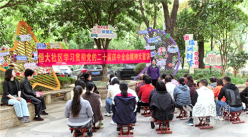 社區(qū)黨委堅(jiān)持把理論武裝擺在首位,著力構(gòu)建立體化宣講矩陣。創(chuàng)新打造“綠洲樹(shù)下”“小亭議事”“周三有約”等特色微陣地,充分發(fā)揮“社區(qū)合伙人”中老黨員、退伍老兵、先進(jìn)模范等榜樣力量的核心作用,組建“紅色宣講團(tuán)”。宣講團(tuán)成員化身“草根講師”,走出會(huì)議室,深入綠蔭下、小亭中,以百姓視角、武漢方言、拉家常方式,生動(dòng)解讀二十屆四中全會(huì)精神等理論及最新政策,使黨的聲音更鮮活、更可感。在“潤(rùn)物有聲”的微課堂里,居民圍坐探討、邊聽(tīng)邊議、有問(wèn)有答,實(shí)現(xiàn)了理論學(xué)習(xí)“零距離”、思想傳播“接地氣”。同步開(kāi)展“治理金點(diǎn)子”征集活動(dòng),引導(dǎo)居民將學(xué)習(xí)成果轉(zhuǎn)化為參與社區(qū)治理的實(shí)際行動(dòng),圍繞公共事務(wù)、環(huán)境整治、鄰里互助等議題積極建言獻(xiàn)策,累計(jì)收集有效建議100余條。