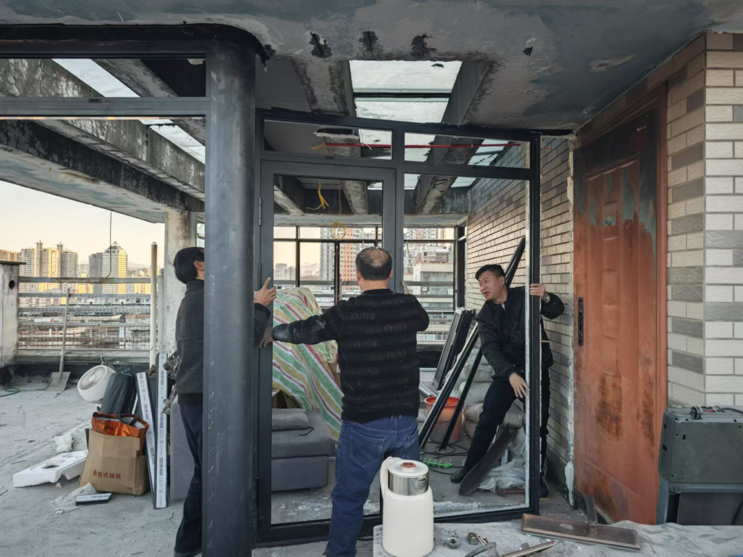 執(zhí)法人員現(xiàn)場拆除違規(guī)占用樓頂公共區(qū)域搭建陽光房