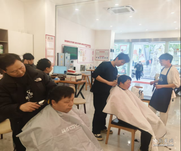 12月9日,在黃鶴樓街道新就業(yè)群體服務(wù)驛站、黃鶴先“蜂”新時代文明實踐點(diǎn)組織的義剪活動現(xiàn)場,高峰的手法已沉穩(wěn)許多。他正專注地為一位同行騎手修剪頭發(fā),動作細(xì)致、眼神認(rèn)真?!暗燃夹g(shù)再熟練些,我想開一家屬于自己的理發(fā)店?!彼f道。那把曾經(jīng)令他忐忑的剪刀,如今正一寸寸剪出一條從奔跑到扎根、從生計到夢想的轉(zhuǎn)型之路。