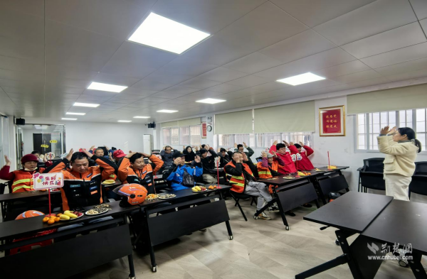 活動(dòng)開(kāi)始前,志愿者已將定制的生日蛋糕、新鮮水果、花生瓜子和熱氣騰騰的姜茶等精心布置妥當(dāng)。三點(diǎn)整,活動(dòng)正式拉開(kāi)序幕。“抓小青蛙”互動(dòng)游戲率先登場(chǎng),隨著趣味故事的講述,大家全神貫注,每當(dāng)“小青蛙”一詞響起,便紛紛伸手去抓身旁伙伴的手腕,現(xiàn)場(chǎng)氣氛迅速升溫。緊接著的“頭肩手操”則讓在場(chǎng)所有人隨著輕快的口令伸展身體、拍肩扭腰,既活動(dòng)了筋骨,也在默契的動(dòng)作中拉近了距離。游戲尾聲,一位在互動(dòng)中被“抓住”的戶(hù)外工作者登臺(tái)即興獻(xiàn)唱,質(zhì)樸而有力的歌聲贏得了滿(mǎn)堂掌聲。