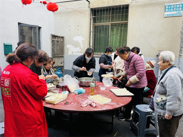 活動最暖環(huán)節(jié),當(dāng)屬跨小區(qū)的鄰里美食互動。工程營小區(qū)鄰里客廳熬制的排骨藕湯香氣撲鼻,九中宿舍小區(qū)鄰里客廳內(nèi),居民正合力包制團(tuán)圓餃子。兩小區(qū)居民齊聚一堂,熱湯配餃子,一場暖心家宴在嘮家常的溫馨氛圍中開席,詮釋了“左鄰右舍齊歡聚,共筑復(fù)興時光里”的活動主題。