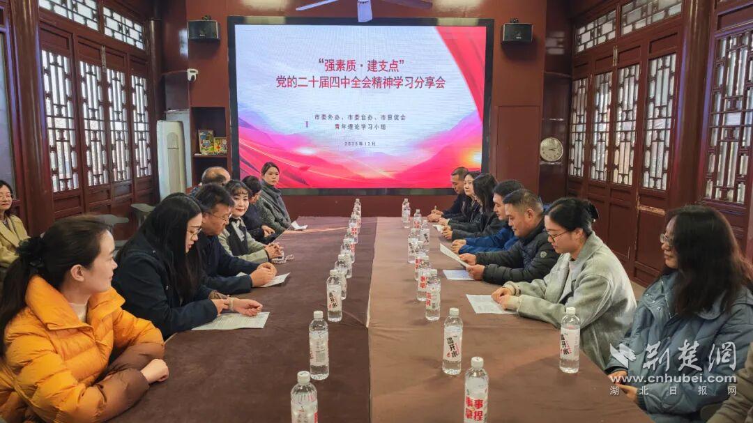 荊楚網(wǎng)(湖北日?qǐng)?bào)網(wǎng))訊(通訊員 史金鐘)冬日的龜山層林浸染,楚風(fēng)漢韻縈繞書香。12月11日下午,來自武漢市委外辦、市委臺(tái)辦、市貿(mào)促會(huì)的青年理論學(xué)習(xí)小組在龜山楚才韜奮書院聯(lián)合舉辦“強(qiáng)素質(zhì)·建支點(diǎn)”讀書活動(dòng)暨黨的二十屆四中全會(huì)精神學(xué)習(xí)分享會(huì)。30余名青年干部通過實(shí)地調(diào)研、思想碰撞,深學(xué)細(xì)悟全會(huì)精神,凝聚服務(wù)“五個(gè)中心”建設(shè)的青春合力。