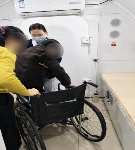 治療結束,服務卻未畫上句號。九十二歲的劉爺爺心臟驟停通過心肺復蘇搶救后,因身體細胞缺氧導致頭暈乏力,每次做完高壓氧,護士總會迎上前扶住他,輕聲問:“爺爺,今天感覺如何?回去慢慢走,記得身邊要有人扶著。”簡單的幾句話,像為一段短暫的旅程系上溫柔的結。完成兩個療程后,他頭暈漸消,步履漸穩(wěn),女兒眼中含淚:“多虧你們每次都惦記著他?!?/p>