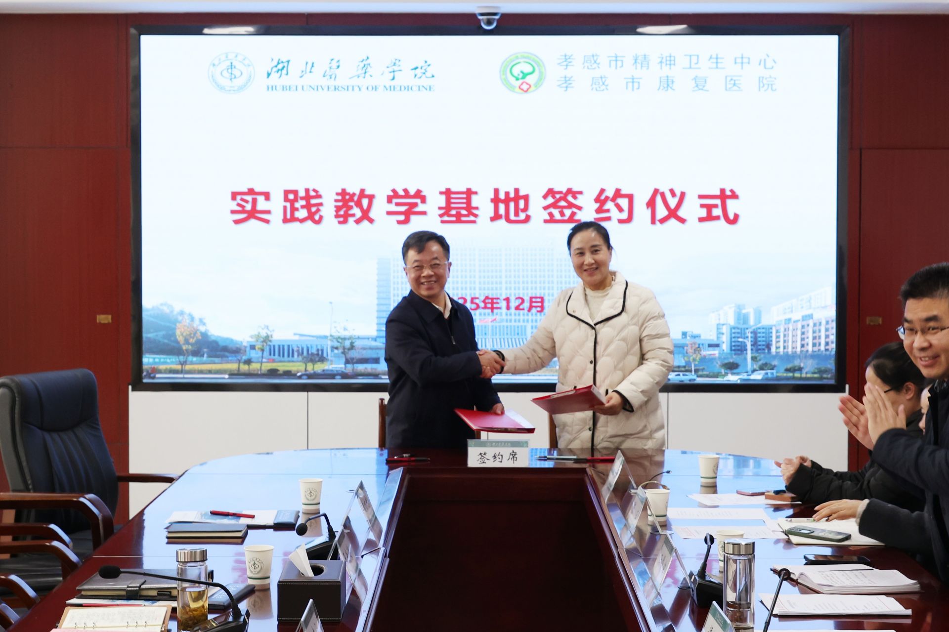 荊楚網(wǎng)(湖北日報(bào)網(wǎng))訊(通訊員 武蘇)12月11日上午,孝感市康復(fù)醫(yī)院與湖北醫(yī)藥學(xué)院在十堰舉行臨床實(shí)習(xí)基地簽約儀式。湖北醫(yī)藥學(xué)院黨委常委、副校長譚艷,孝感市康復(fù)醫(yī)院院長劉曉安、副院長王光海等雙方領(lǐng)導(dǎo)及相關(guān)部門負(fù)責(zé)人出席活動。