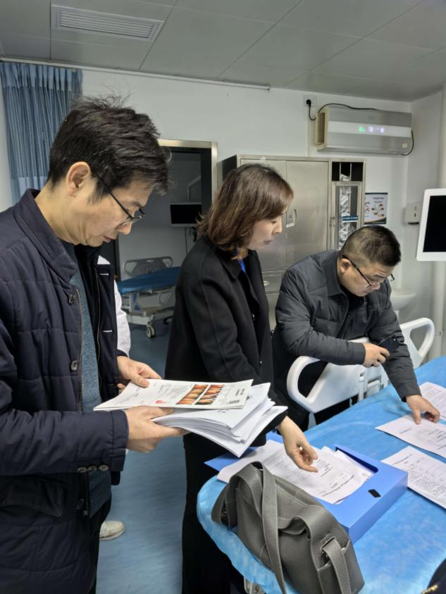 專家組由武漢大學(xué)人民醫(yī)院安萍教授、陳煒教授、駱孜護(hù)士長(zhǎng)及武漢科技大學(xué)天佑醫(yī)院龍輝教授組成,采取“現(xiàn)場(chǎng)核查+資料審閱+人員訪談+集中匯報(bào)”的方式,對(duì)區(qū)域布局與流程、操作人員資質(zhì)、內(nèi)鏡消毒滅菌、患者安全管理、設(shè)備耗材保障等八大核心維度進(jìn)行全方位評(píng)估。檢查過程中,專家組深入消化內(nèi)鏡中心,實(shí)地查看診療區(qū)域布局、設(shè)備運(yùn)行狀況及消毒供應(yīng)流程,仔細(xì)翻閱病歷檔案、操作記錄和質(zhì)控臺(tái)賬,與醫(yī)護(hù)人員面對(duì)面交流診療規(guī)范落實(shí)及應(yīng)急處置流程等情況。