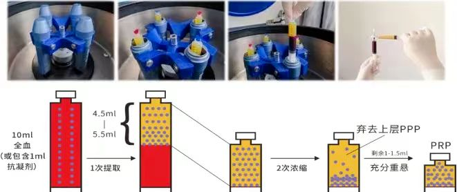 ①通過抽取患者自體血液,利用離心機分層后人工提取PRP。
