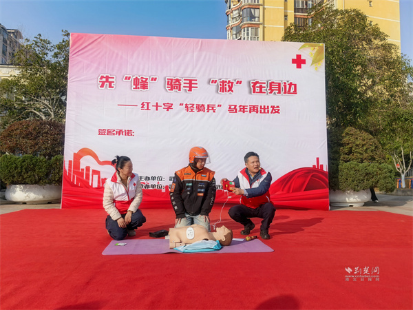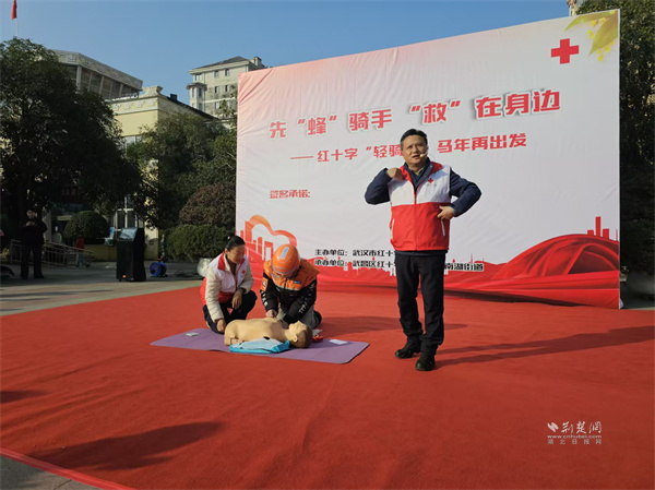荊楚網(wǎng)(湖北日?qǐng)?bào)網(wǎng))訊(通訊員 王瑜婷)1月15日,武昌區(qū)南湖街道寶安社區(qū)開(kāi)展“先‘蜂’騎手,‘救’在身邊——紅十字‘輕騎兵’馬年再出發(fā)”主題活動(dòng)。市、區(qū)紅十字會(huì)及南湖街道相關(guān)負(fù)責(zé)人,外賣(mài)、快遞小哥代表齊聚現(xiàn)場(chǎng),共同見(jiàn)證這支由新就業(yè)群體組成的紅十字“輕騎兵”志愿服務(wù)隊(duì)再啟新程。