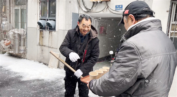 “大家歇一歇,喝點(diǎn)姜茶暖暖身子!”正當(dāng)眾人干勁十足時(shí),一位黨員居民端著熱氣騰騰的姜茶走來(lái),將暖茶遞到每個(gè)人手中。“我家老伴重癥需要照顧,沒(méi)辦法和大家一起出力,只能煮點(diǎn)熱茶讓大家暖和一下?!币槐?、一聲問(wèn)候,凝聚起鄰里間最真摯的情誼,為掃雪行動(dòng)更添溫情。