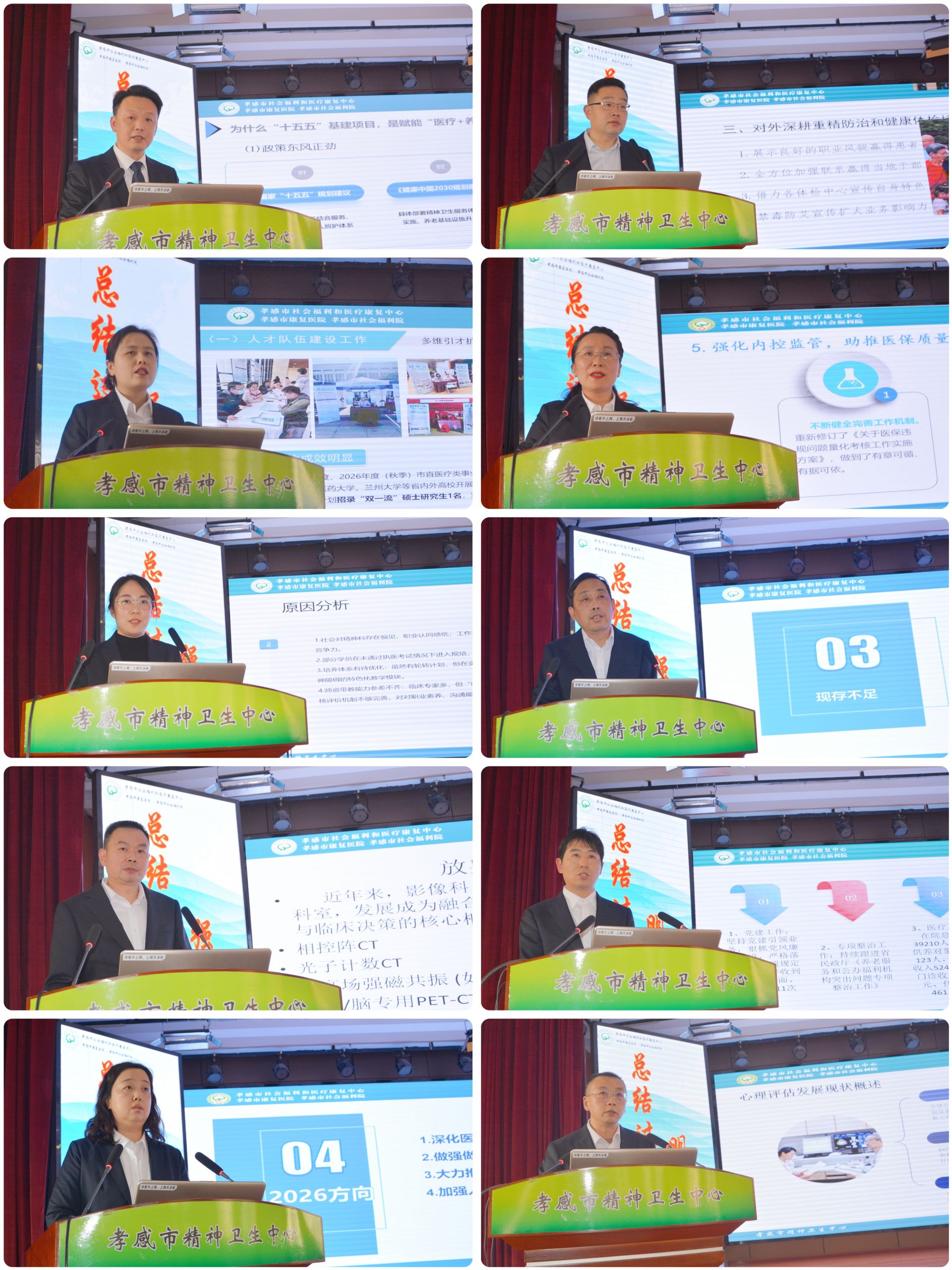 會上,各科室負(fù)責(zé)人依次登臺匯報(bào),緊扣國家“十五五”規(guī)劃、健康中國行動及“精神衛(wèi)生服務(wù)年”等核心政策導(dǎo)向,精準(zhǔn)對接人口老齡化背景下的民生服務(wù)需求,既全面梳理了2025年各項(xiàng)工作取得的成效亮點(diǎn),又直面發(fā)展瓶頸深入剖析問題根源,更結(jié)合科室實(shí)際提出了2026年的創(chuàng)新思路與務(wù)實(shí)舉措,充分展現(xiàn)了“中心”干部職工勇?lián)姑⒐仓\發(fā)展的責(zé)任擔(dān)當(dāng)與昂揚(yáng)向上的奮進(jìn)姿態(tài)。