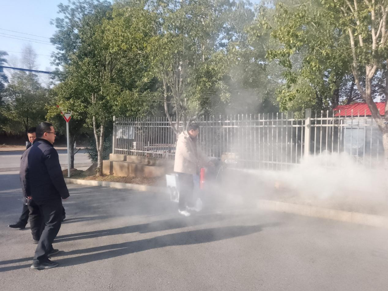 圖為:演練現(xiàn)場干部職工進行滅火器實操訓(xùn)練