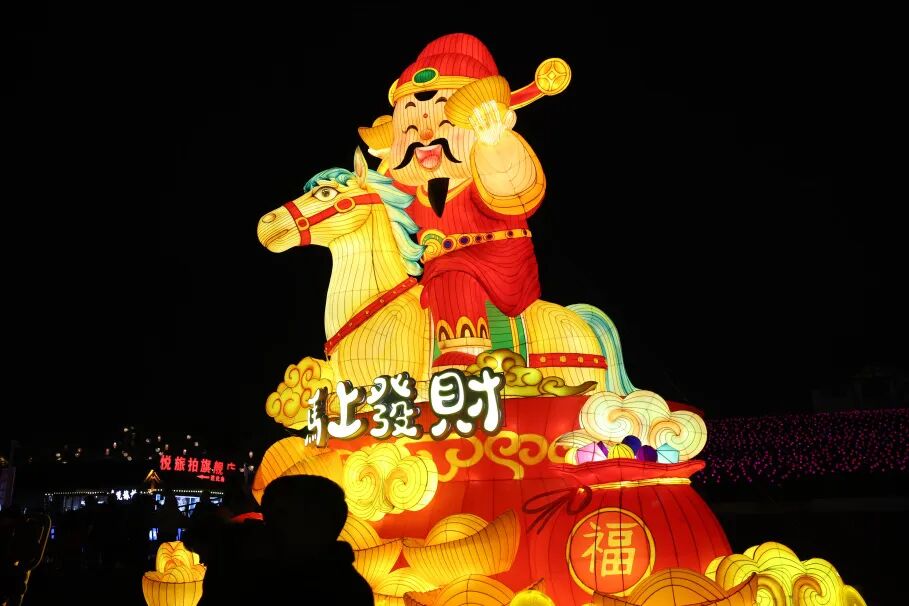 同時,12米高、20米長的“錦馬呈祥”巨型燈組搭配西蘭卡普紋樣飄帶,《山海尋夢》《萬馬奔騰》等26組特色花燈點亮夜空,其中“萬馬奔騰”燈組360度旋轉,成為游客拍照打卡的熱門點位。