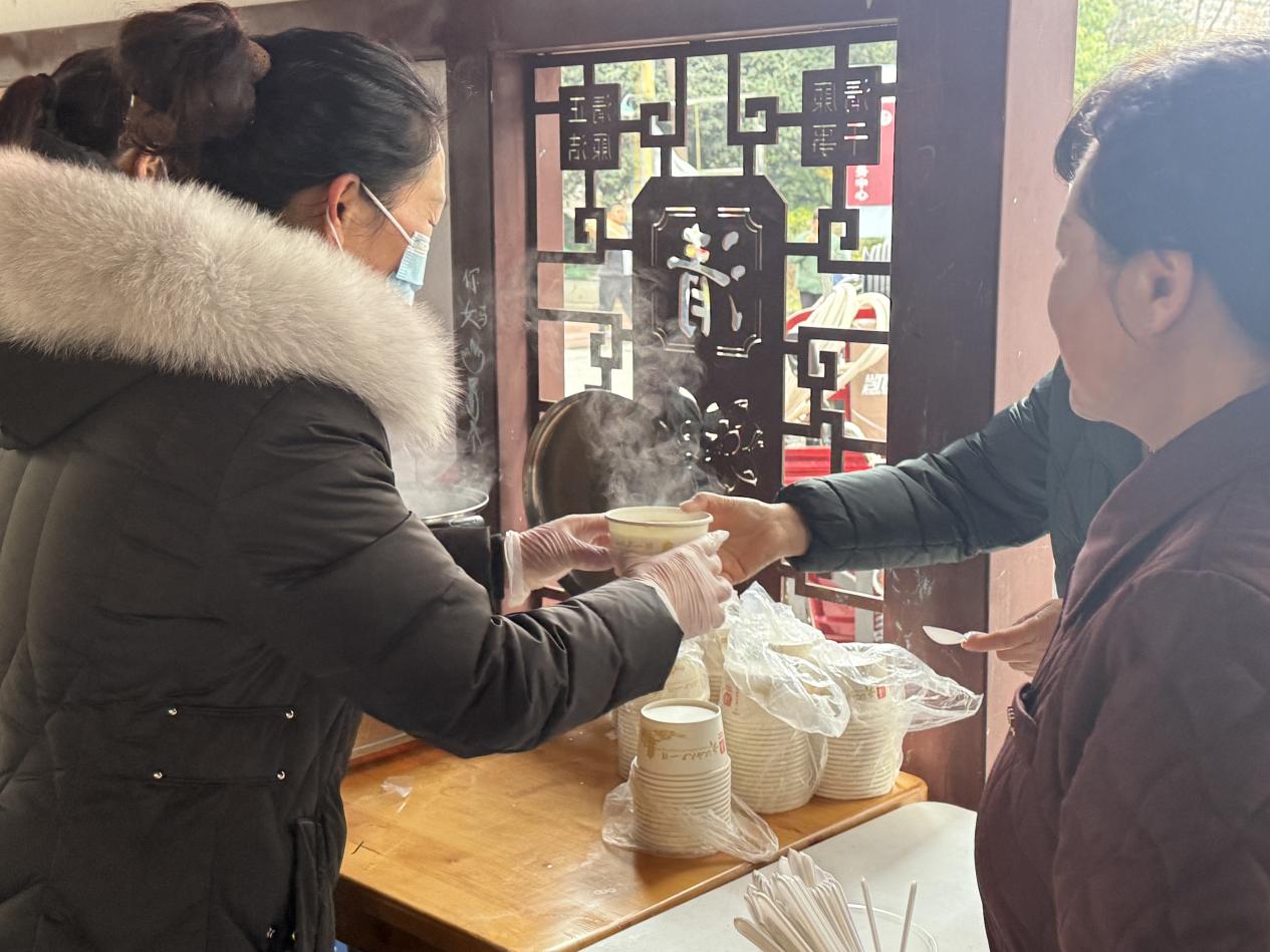 活動(dòng)現(xiàn)場(chǎng),志愿者們分工明確、默契配合,現(xiàn)場(chǎng)直接煮制湯圓,沸騰的鍋具旁暖意融融,濃郁的香甜氣息很快彌漫在清風(fēng)廉廊。湯圓煮好后,志愿者們迅速分裝,第一時(shí)間將一碗碗熱氣騰騰的湯圓送到現(xiàn)場(chǎng)居民手中,尤其對(duì)老年群體格外關(guān)照,主動(dòng)為行動(dòng)不便的老人遞上湯圓、送上問候。“湯圓甜,心里更甜!感謝社區(qū)和志愿者們,讓我們感受到了家的溫暖。”接過湯圓的居民連連稱贊,臉上洋溢著幸福的笑容。