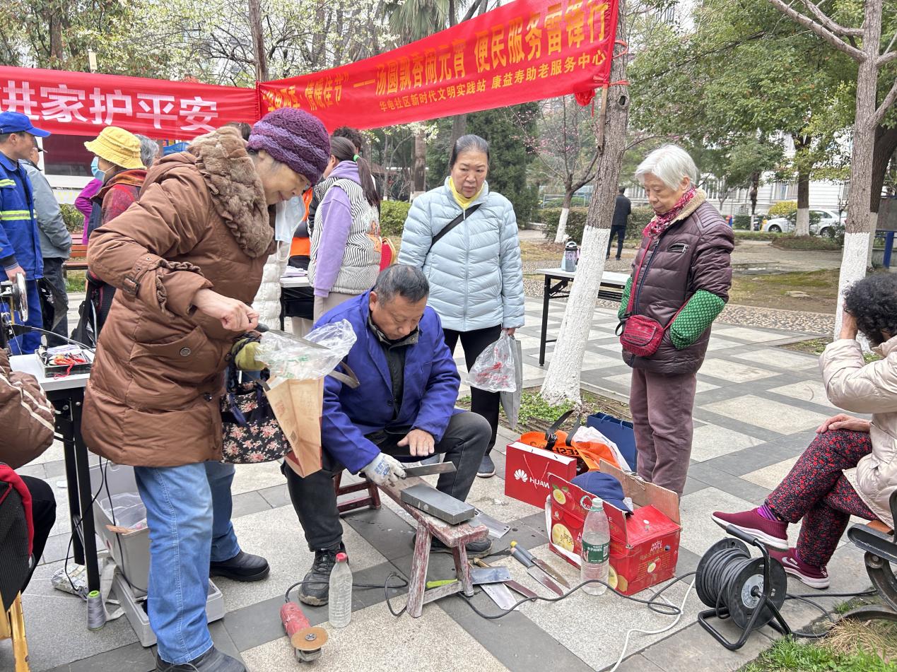 品嘗完湯圓,豐富的便民服務隨即在社區(qū)展開。居民們紛紛帶著需要修補的物品前來。專業(yè)的服務團隊一字排開,提供刷鞋、縫補、修傘、磨刀、理發(fā)等多項貼心服務。志愿者們動作嫻熟,熱情周到,解決了居民生活中的小麻煩,贏得了大家的一致好評。活動現(xiàn)場,工作人員還積極宣傳安全用電、用氣及防火防盜知識,反復叮囑居民們“安全無小事,平安過佳節(jié)”,為歡樂祥和的節(jié)日氛圍筑牢安全防線。