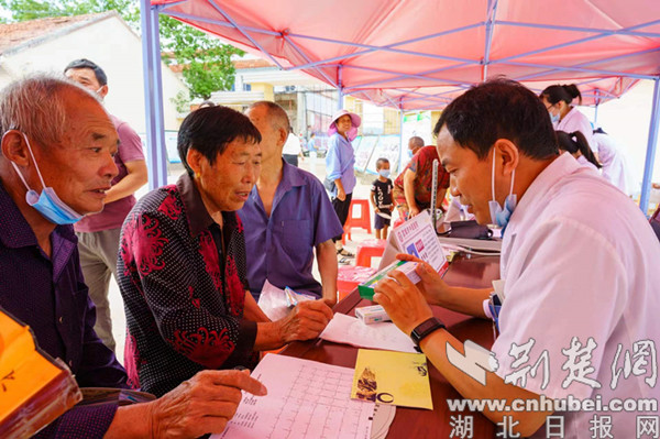 謳樂社區(qū)區(qū)位特殊,距宜城有2個(gè)小時(shí)車程,距流水鎮(zhèn)衛(wèi)生院有1個(gè)小時(shí)車程。當(dāng)日,40多名醫(yī)護(hù)人員共為1200余村民把脈、問診、開藥、治療。