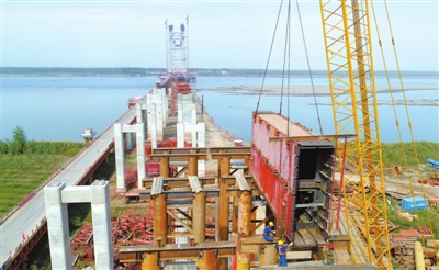 據(jù)介紹,赤壁長(zhǎng)江公路大橋南岸灘橋、引橋、左湖大橋、清江寨大橋墩身及蓋梁進(jìn)展順利,即將完工。
