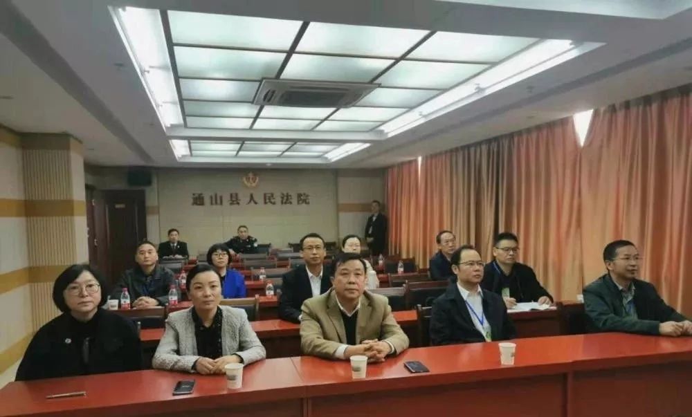 通山縣委書記石玉華,湖北省司法廳律師工作處處長嚴(yán)安,縣委副書記、政法委書記胡江玲,通山縣人民法院黨組書記、院長鐘華崗,通山縣人民檢察院黨組書記、檢察長陳利及省市縣相關(guān)領(lǐng)導(dǎo)在通山縣人民法院安保指揮中心觀摩庭審直播。部分黨代表、人大代表、政協(xié)委員、人民監(jiān)督員、群眾代表等在現(xiàn)場觀摩庭審。