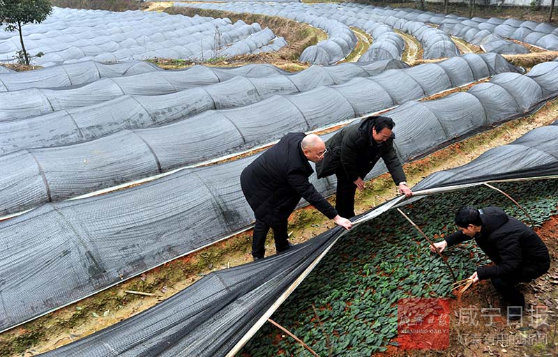 昨日,通城縣雋水鎮(zhèn)利和村興農(nóng)茶藥果苗良種場,農(nóng)技專家正在查看新育茶苗生長情況。據(jù)了解,為做優(yōu)茶產(chǎn)業(yè),該縣去冬今春新育中茶108、櫧葉齊等名茶苗30余畝600余萬株,預(yù)計今年可新增茶園2000余畝。