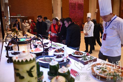 經過精心制作,菜品《三顧茅廬》《蒲圻魚嘴》《茶香紅酒牛肉》《赤壁魚羊鮮》等極具咸寧地方特色的美食香飄四溢,讓現場觀眾一飽眼福,滿足味蕾需求的同時,也展示了地方飲食文化特色。