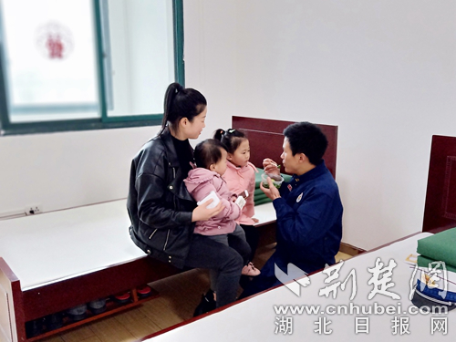 溫泉大隊參謀 喻劍溫泉大隊參謀喻劍——春節(jié)期間堅持駐守在自己的崗位上,未能回到家中和親人團聚。2月8日,年幼的女兒想念父親,在和他的視頻中哭泣,詢問爸爸為什么還不回家,喻參謀不忍心欺騙孩子,只能暗暗傷心。到了當(dāng)晚,妻子攜女兒來到三號橋執(zhí)勤站探望駐守在崗的他,給他帶來了一個驚喜,相機記錄下這幅溫馨和諧、父慈子孝的親情畫卷。