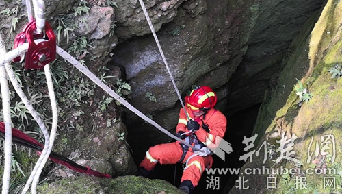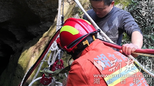 因消防車無法抵達,消防員帶上救援工具,徒步半個多小時迅速趕赴事發(fā)現(xiàn)場開展救援。到達現(xiàn)場后,發(fā)現(xiàn)一名三十多歲男性在一個10多米的深洞內呼救。經與被困者和現(xiàn)場群眾溝通了解,此洞名為藏龍洞,是一個未經商業(yè)開發(fā)的深洞,有著悠久的歷史傳說,引來無數(shù)探險者,這名男子也是因為好奇,下洞后體力不支無法再攀爬出洞被困洞底。中隊指揮員根據現(xiàn)場情況,立即利用救援繩索做好安全支點,消防員何聰點降至洞底查看被困者情況,所幸洞內空氣流暢,被困者無二次受傷的危險,消防員利用隨身攜帶的全身吊帶將被困者固定好后,經洞外消防員齊力,最終經過20多分鐘的救援,被困人員被成功營救出山洞。