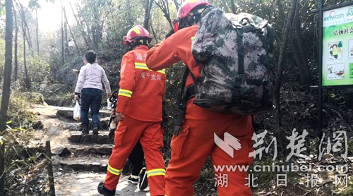 消防員徒步前往救援現(xiàn)場。(通訊員 范斌斌 攝)