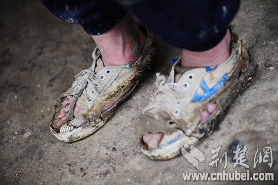 在大方縣興隆村,小女孩高燕穿的球鞋看了讓人心疼。5個腳趾全露在外面,鞋面與鞋底僅靠幾根棉絲相連,高燕一直都是靠這雙鞋爬山上學,到了學校再換上好一點的球鞋。
