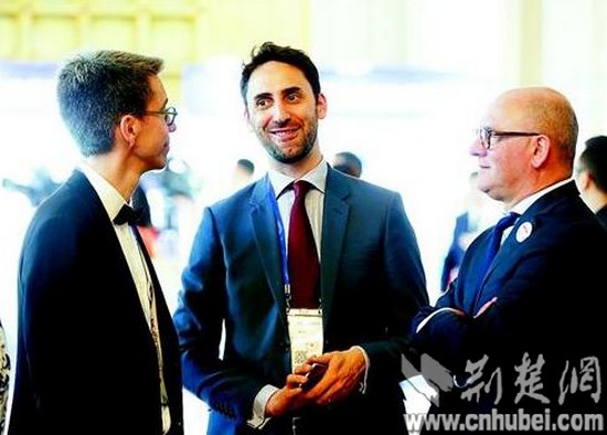 圖為:右圖:海外代表在會(huì)場(chǎng)外交流。(記者 倪娜 李溪 攝)