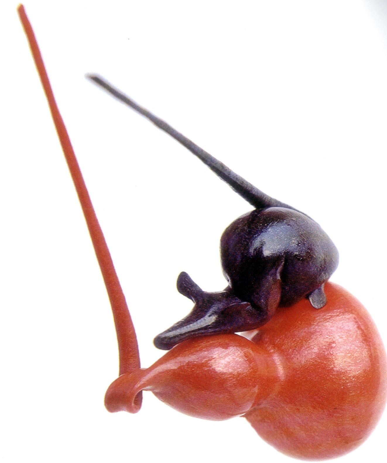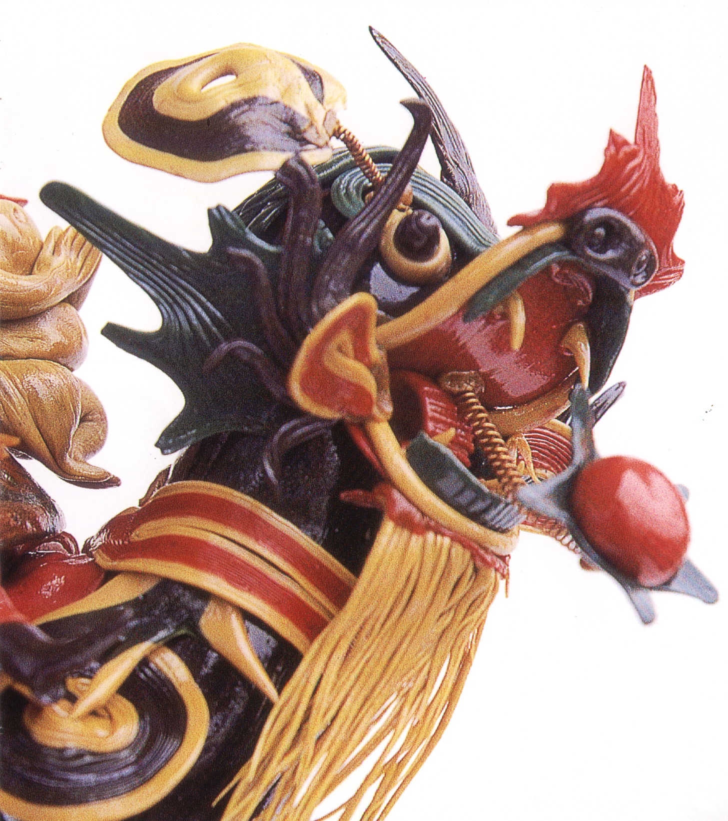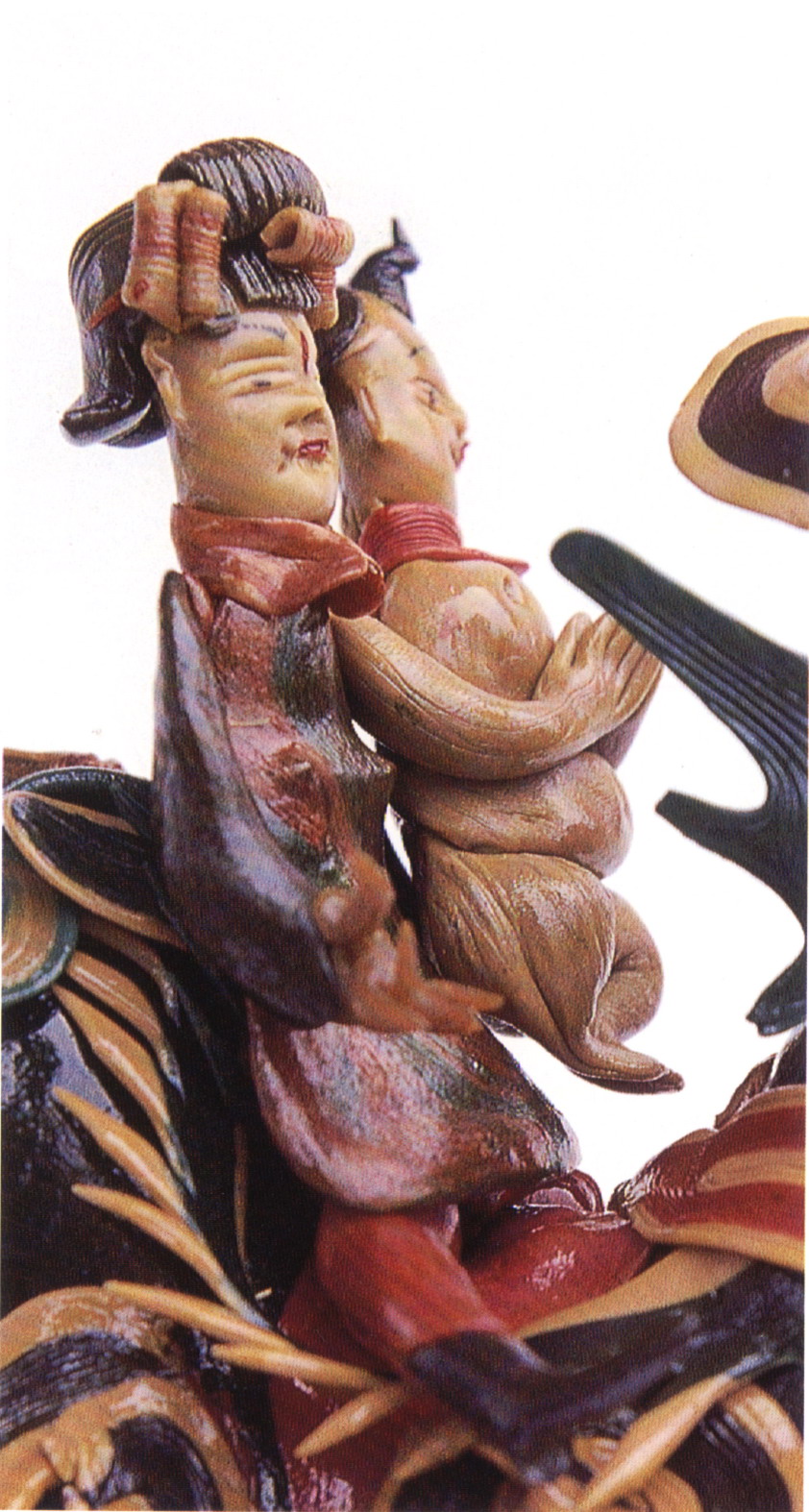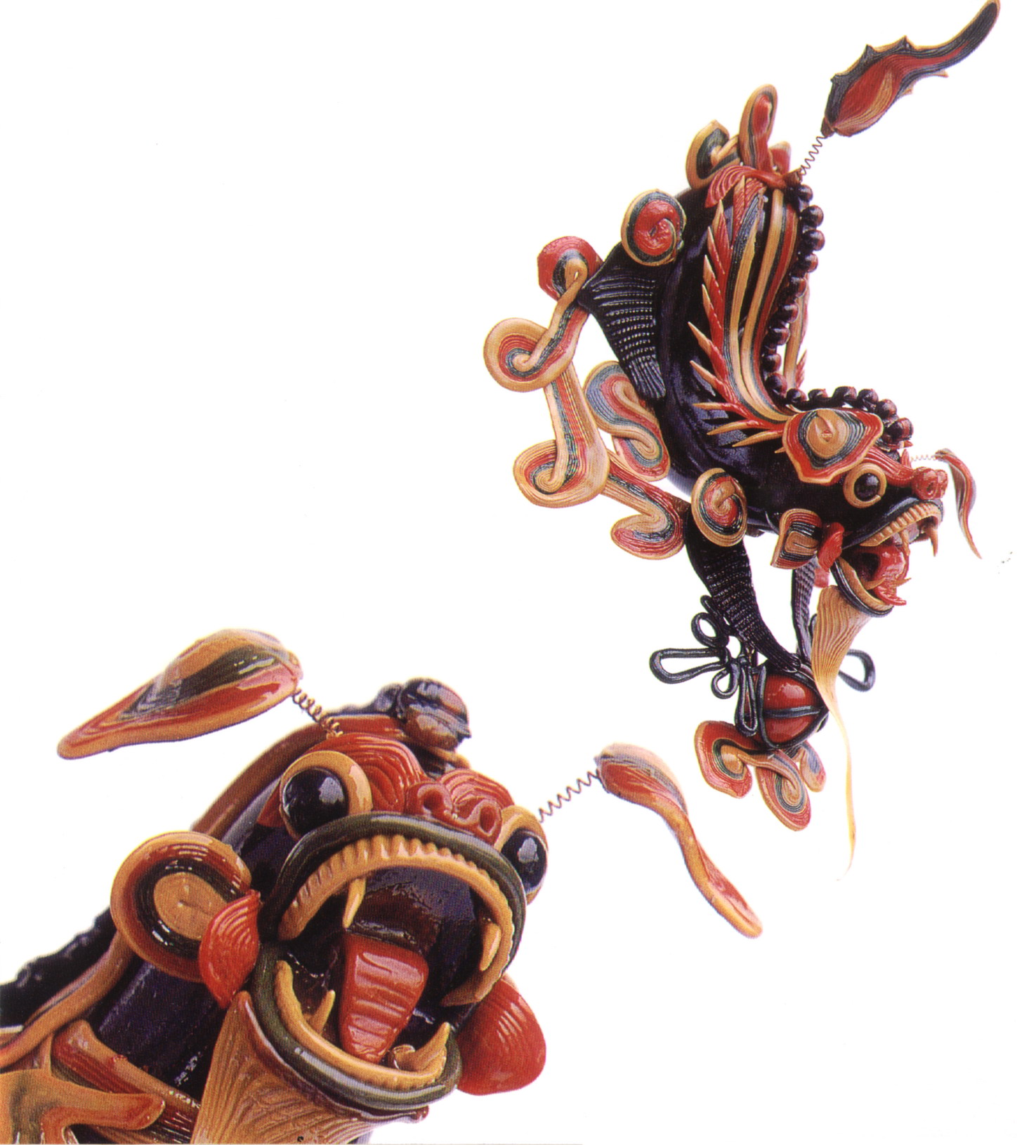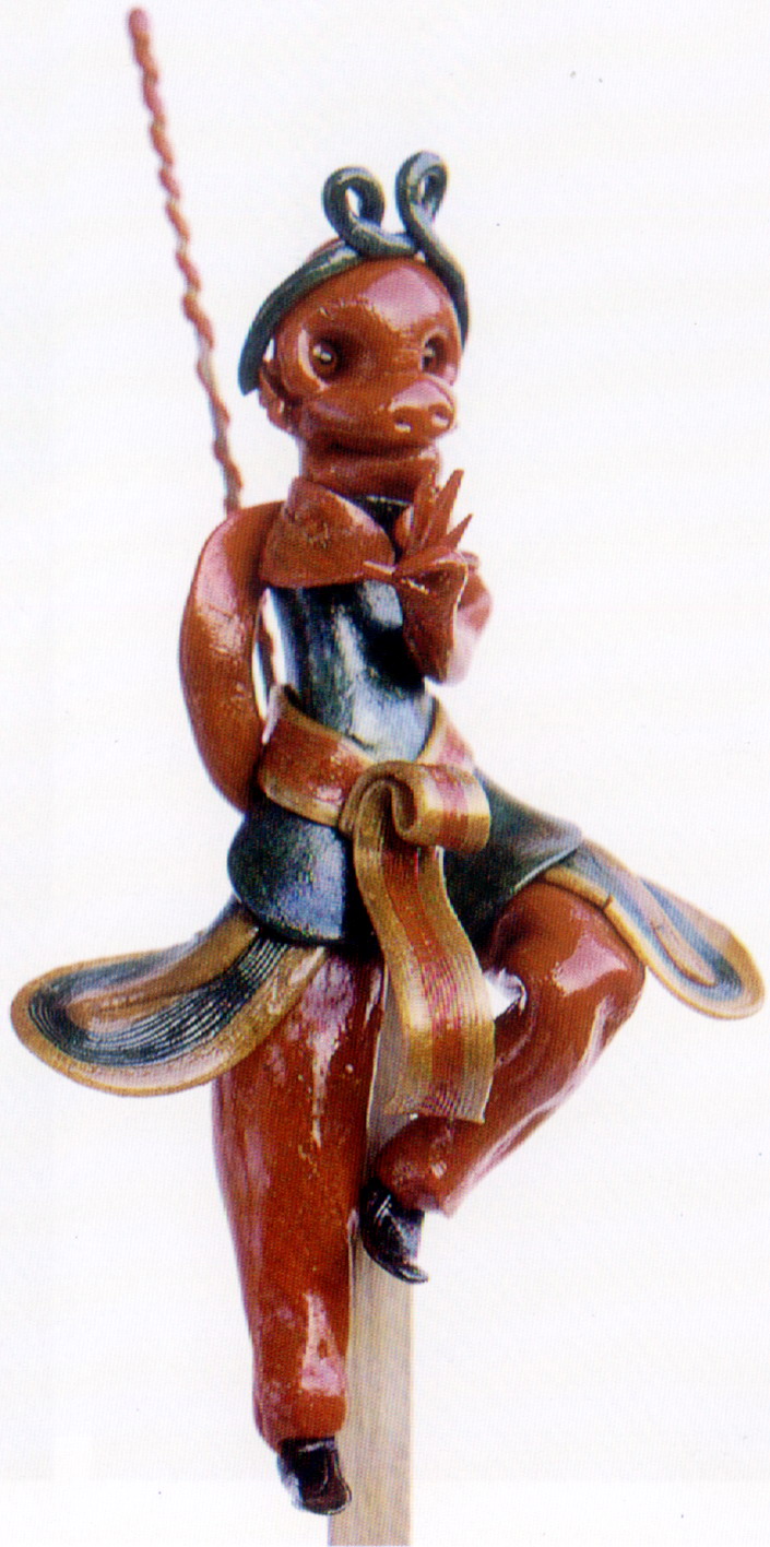 糖塑,俗稱吹糖,在湖北遍及全省,尤以天門最為突出。糖塑之所以贏得人們的喜愛,是因為它獨具特色:1、原料可塑性強:麥芽糖是糖塑的主要原料,加熱后變軟,比面塑更具可塑性,既可吹成薄而亮的各類造型,又可拉成粗細不同的糖絲。捏成不同形狀的配件,易粘且牢固;2、造型神形兼?zhèn)洌禾撬艿募妓囍饕Ψ蛟凇按怠鄙希粔K糖坯在藝人手中,邊吹邊捏,再通過搓、壓、挑、剪等手段,加上輔助的小鐵絲,少則幾分鐘,多則半小時,一件作品就完成了;3、色彩和諧醒目:麥芽糖加溫變軟加入紅、綠、黃、黑四種色素,根據需要又可調和成數十種復色,色彩響亮和諧;4、肌理變化豐富是糖塑獨具的特點:在糖塑中,附件變化萬千的肌理又與主體吹成光滑的表面形成鮮明的對比,顯得更加豐富耐看;5、“活”的部件是糖塑的又一特點:有的部件裝上自制的鋼絲彈簧,一經拿在手中,部件都“活”起來了,更具生氣。